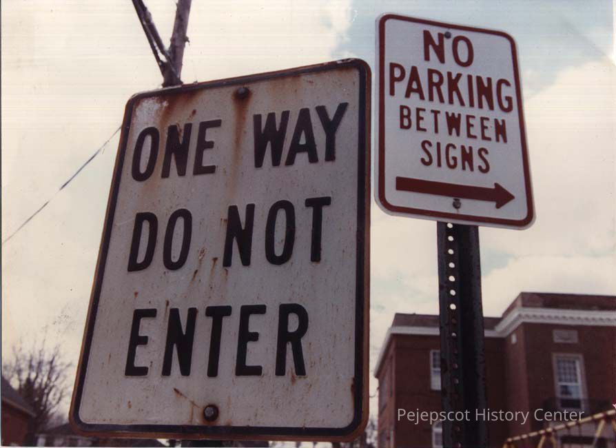 A photo view of traffic signs on Federal Street. 3/1/1991.