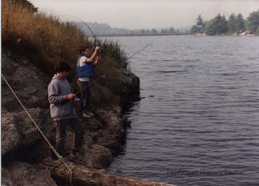 A color photographic view of two boys fishing. This photo was published 8/16/1989.