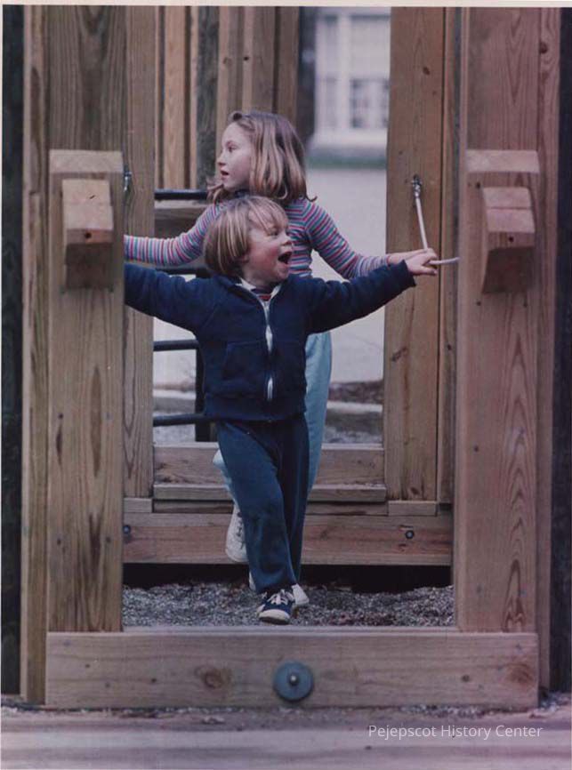 A color photographic view of two children playing. This photo was published 4/22/1987.