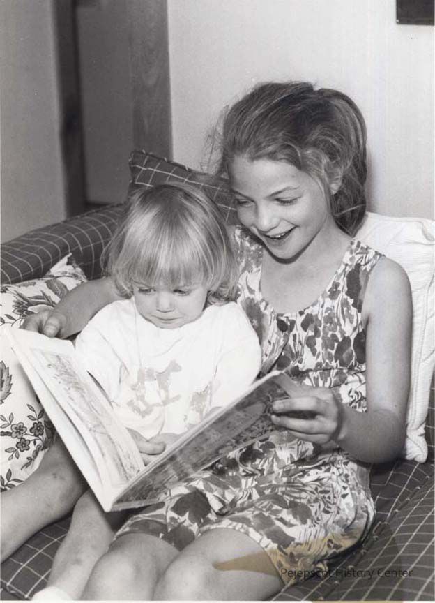 A B/W photographic view of two children reading a book. This photo was published 6/8/1992.