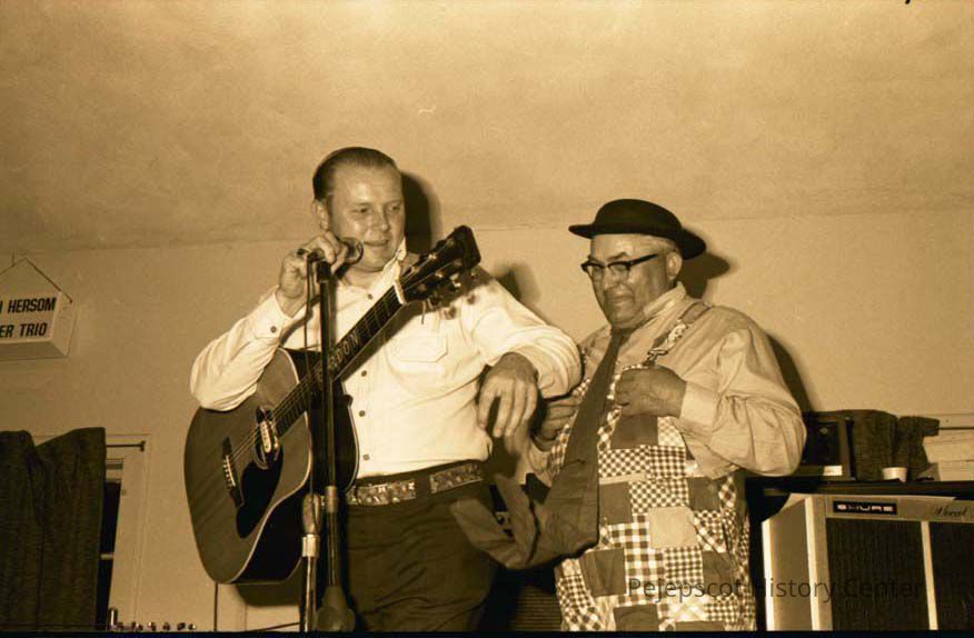 A B/W photographic view of two performers in Harpswell. This photo was published 7/6/1977.