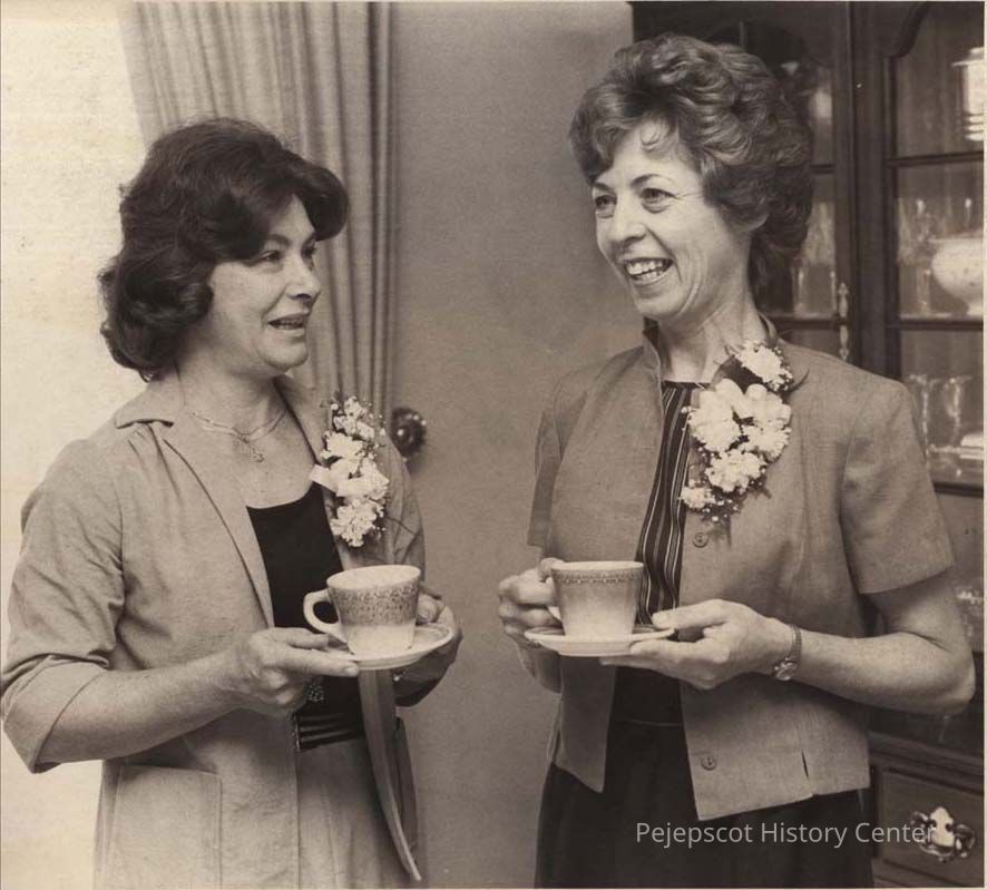 A B/W photographic view of two women, one of whom is Mrs. William L. Rice.. This photo was published 10/19/1981.