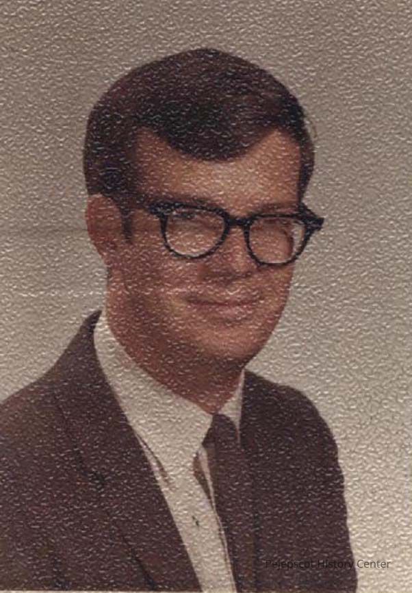 A B/W photographic view of Wayne Libby, guidance director at Brunswick Junior High School.