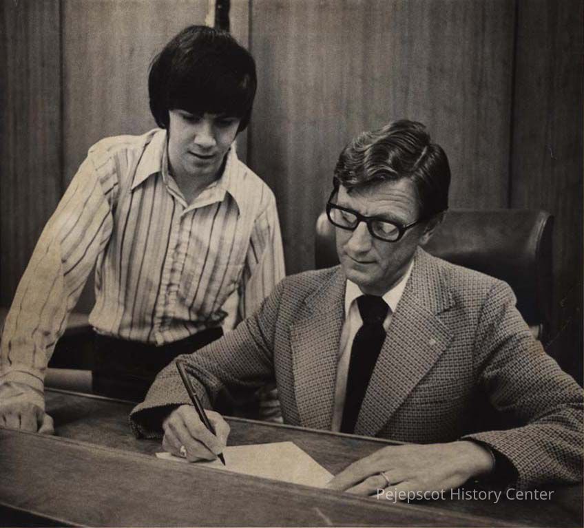 A B/W photographic view of William N. McKeen and an unidentified boy. Marked on the back, "St. Jude's Weekend". This photo was published 10/10/1975.