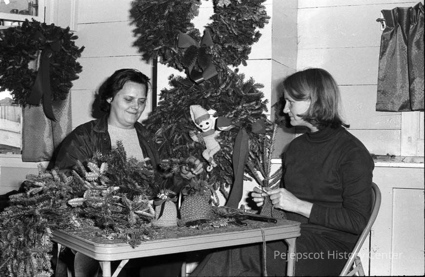A photo view of wreath making Orr's Island.Entry/Object ID
