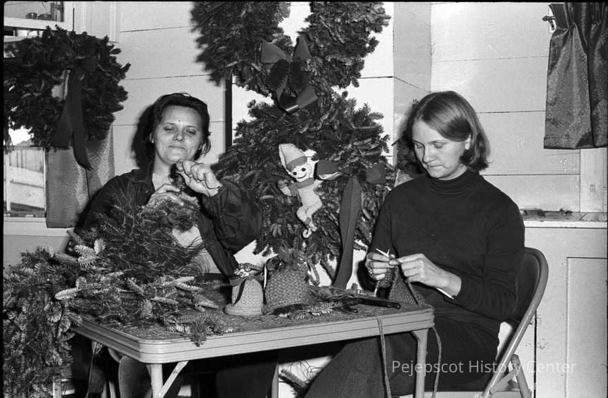 A photo view of wreath making Orr's Island. 11/18/1914.Entry/Object ID