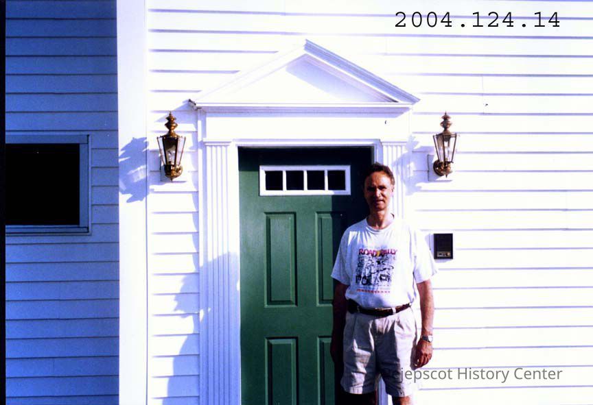 A color photograph of Peter Ladner, standing in front of his door at 25 Federal Street.