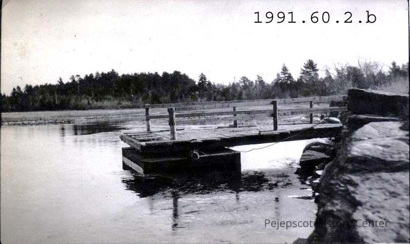 A B/W picture postcard of the ferry slip on the Brunswick shore on site of Old Merrymeeting Bay Bridge. Photo taken by Thos. A Riley Jr.