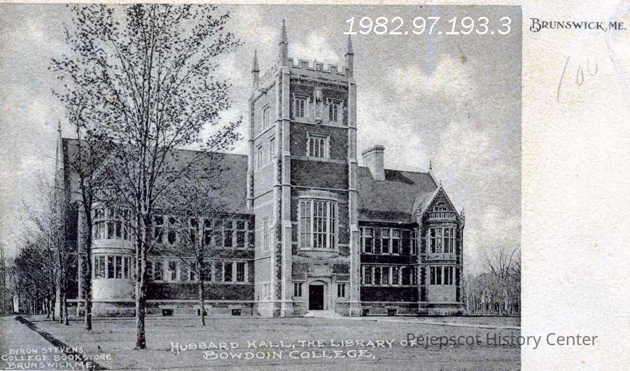 A picture postcard of Hubbard Hall, the library of Bowdoin College.