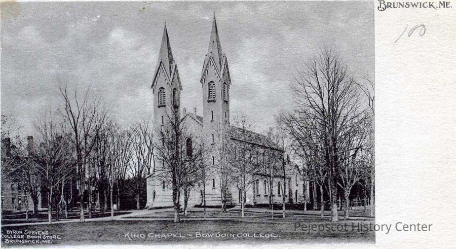 A B/W picture postcard of King Chapel, Bowdoin College.Collection