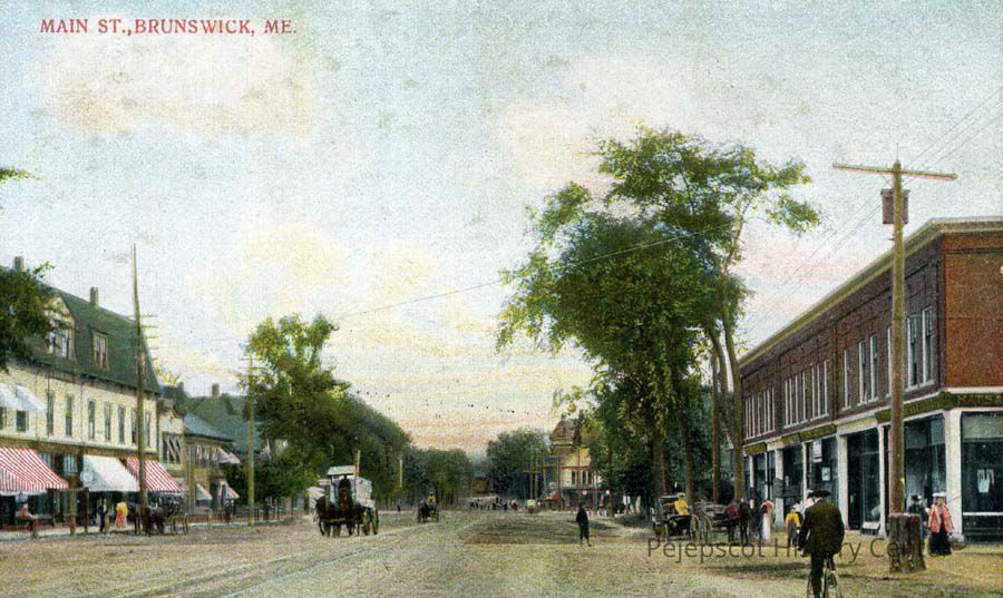 A color picture postcard of Maine Street from the Tondreau Block looking south.. pre 1930.