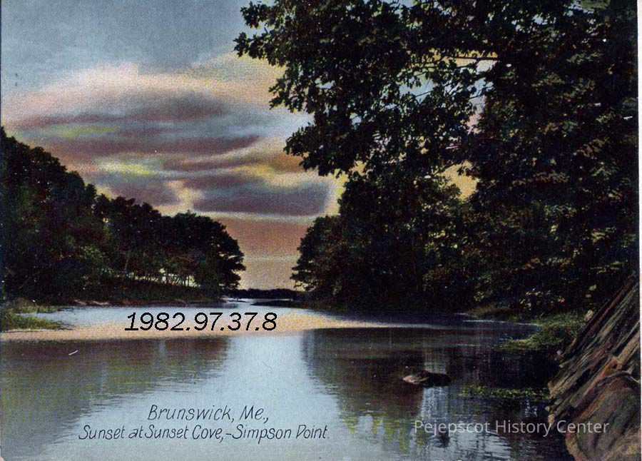 A color picture postcard of Simpson's Point at sunset.