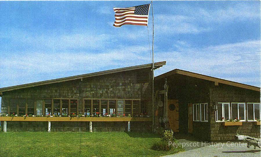 A color picture postcard view of Cook's Lobster House, Bailey Island. Route 24, opposite the famous Cribstone Bridge on Garrison Cove.Collection