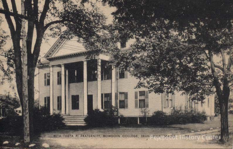 A picture postcard view of Beta Theta Pi Fraternity, Bowdoin College. The postcard is postally unused.