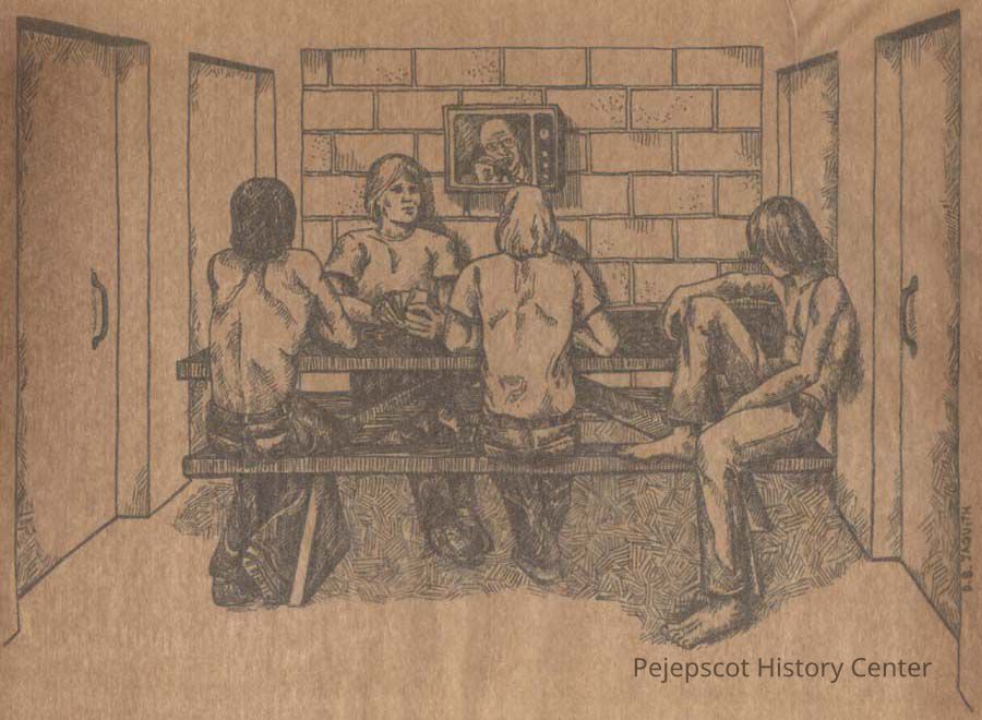 A B/W print of a pen and ink drawing by D. B. Jaquith. Marked on the back, "Juvenile Crime".