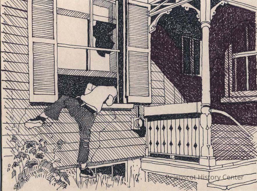 A B/W print of a pen and ink drawing. No artist or date. Marked on the back, "Juvenile Crime".