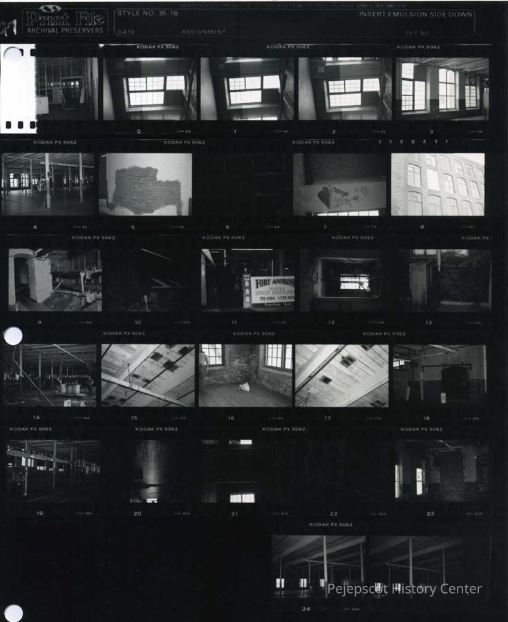 A sheet of small B/W photographs taken inside Cabot Mill.