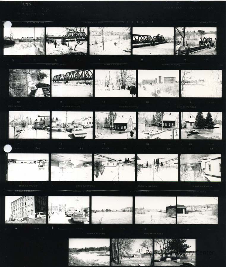 A sheet of small photos of the 1987 flood.