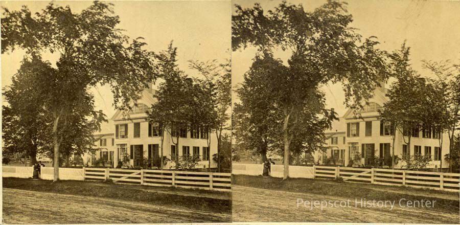 A B/W steropticon view of 56 Elm Street, Topsham, home of Abelaid & William E. Frost