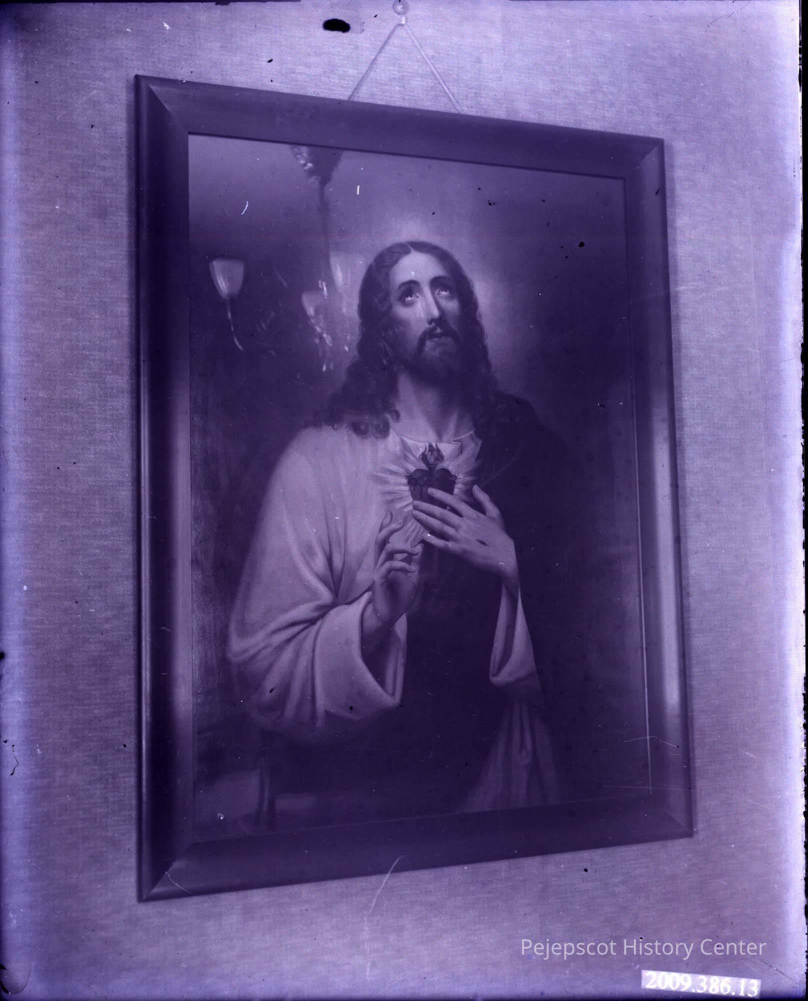 A view of a religious picture or painting of Jesus hanging on a wall, 21 Oak.