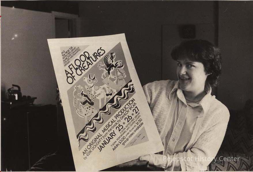 A B/W photographic view of Dahlov Ipcar with one of her creations. This photo was published 2/2/1979.