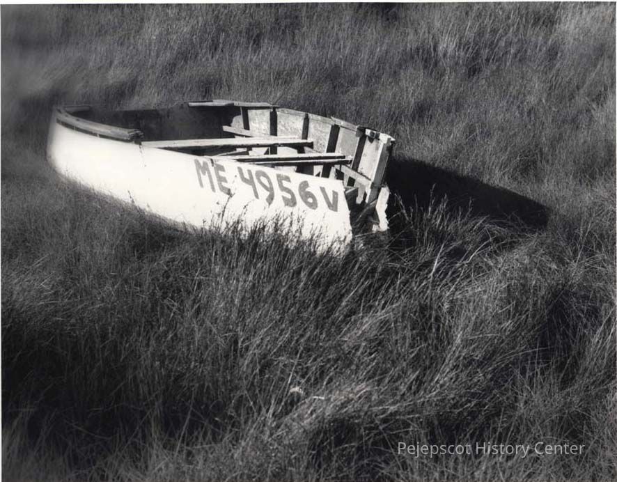A photo of an abandoned boat at the Town Landing, Maquoit. Undated
