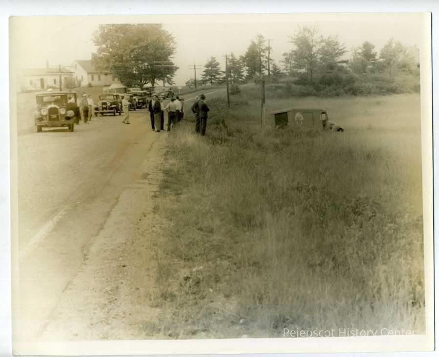 An accident on Route 123 just before Dyer's Corner. A Hood milk truck went off the road into a field. Undated