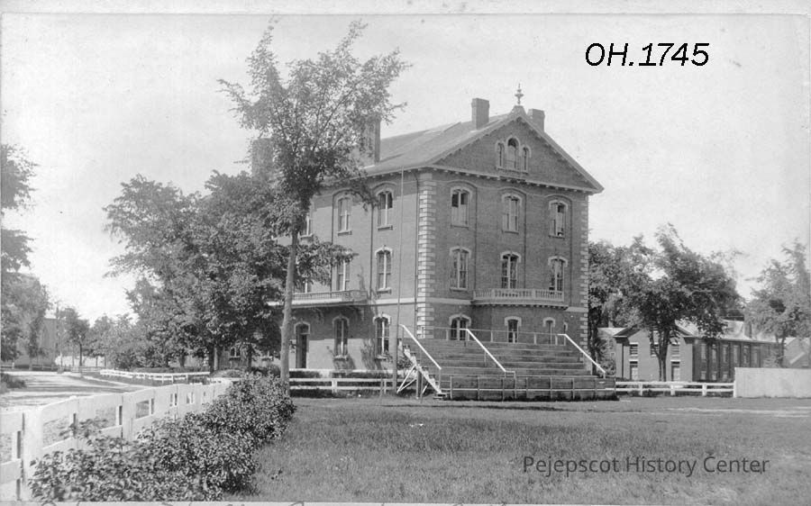 A B/W photograph of Adams Hall, Bowdoin College, Brunswick, ME. Written on back, "Henry C. Upton". Not dated.