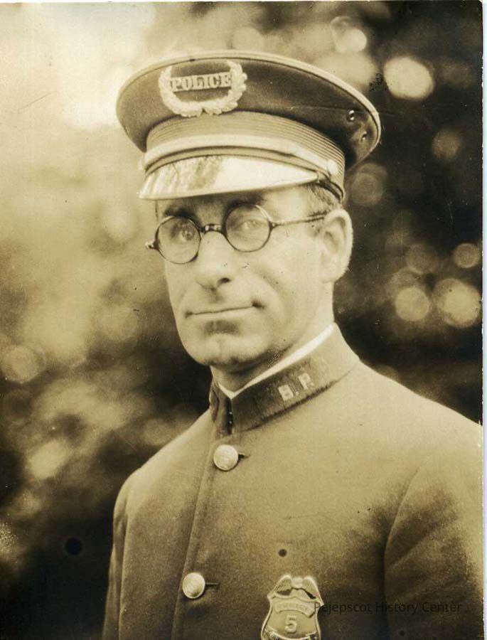 Sepia photograph of Adescua Fournier, Brunswick Police Department Fire Police, Brunswick, ME (1938-1939)