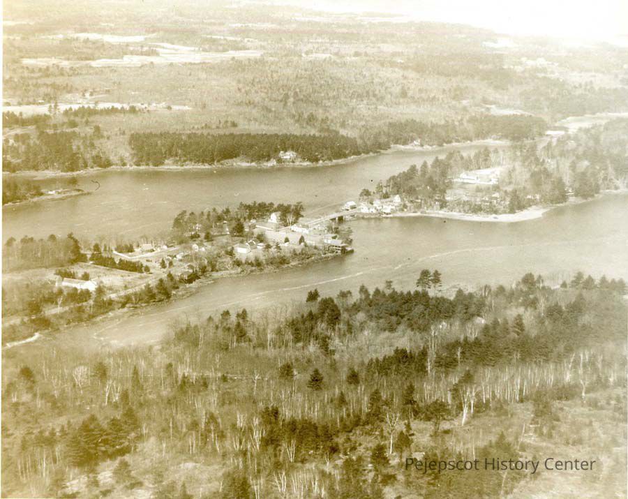 A B/W aerial photograph showing Gurnet House, Gurnet Bridge and the old dance hall. Undated