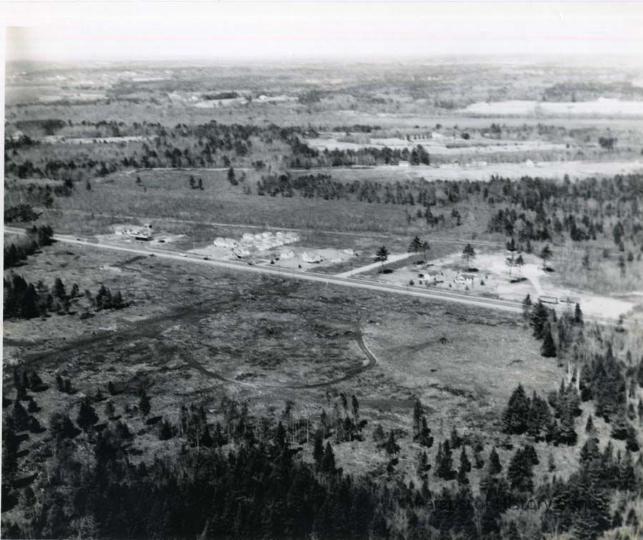 A B/W aerial photograph of outer Pleasant Street. Undated