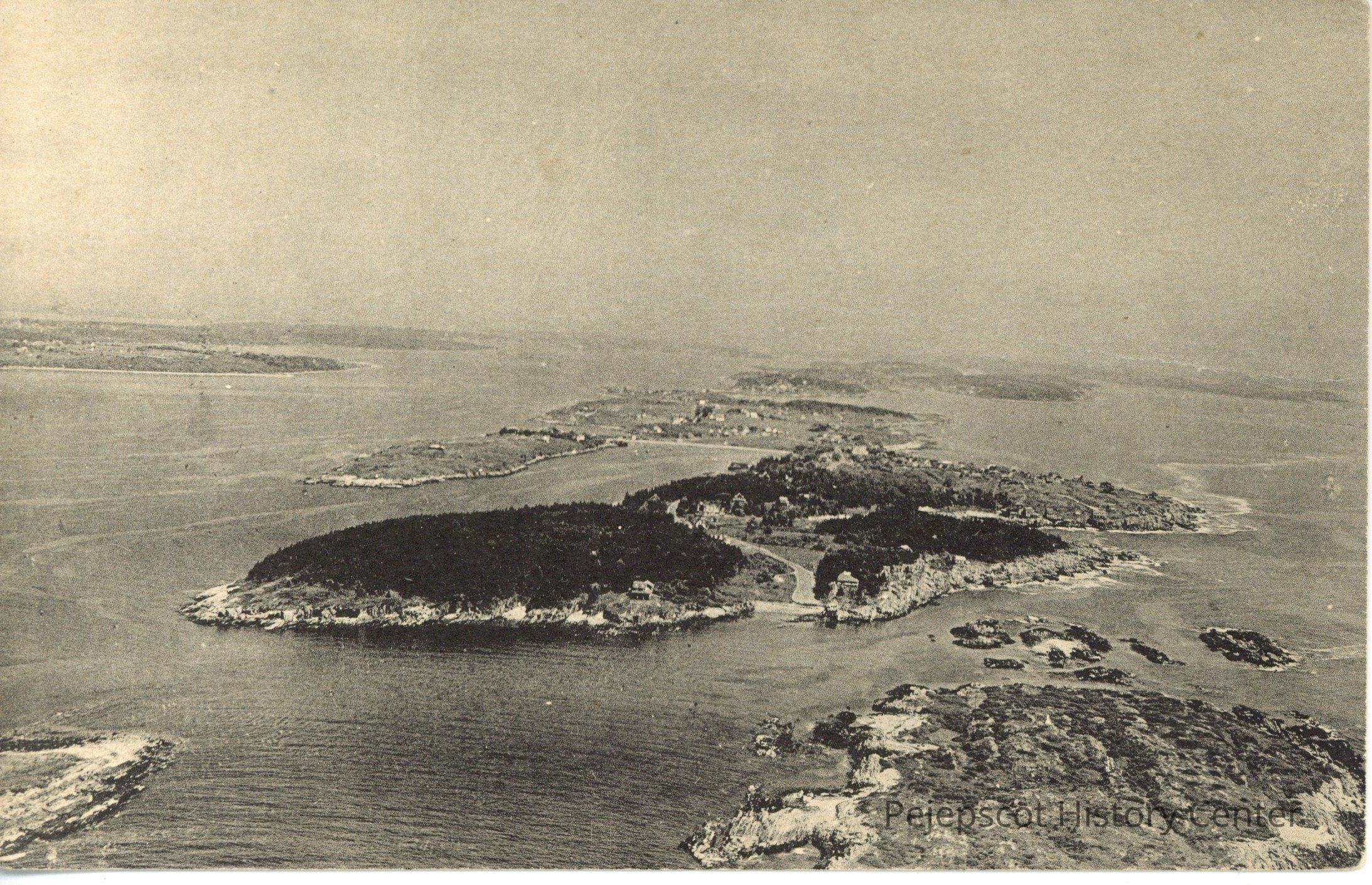 Black and white aerial photo of Bailey Island. Maine.Collection