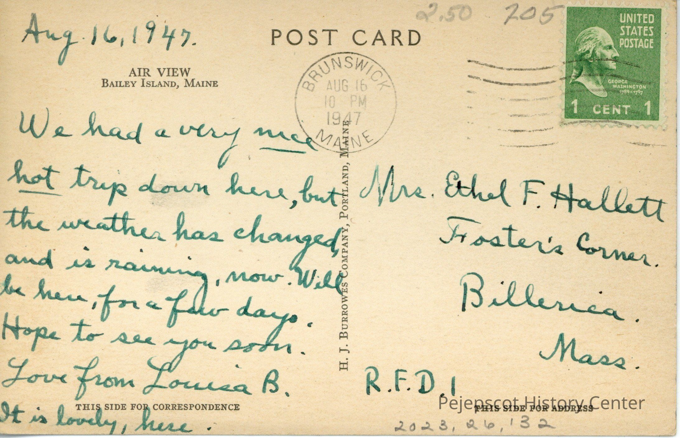 H. J. Burrowes Company, Portland, Maine.Postmark
