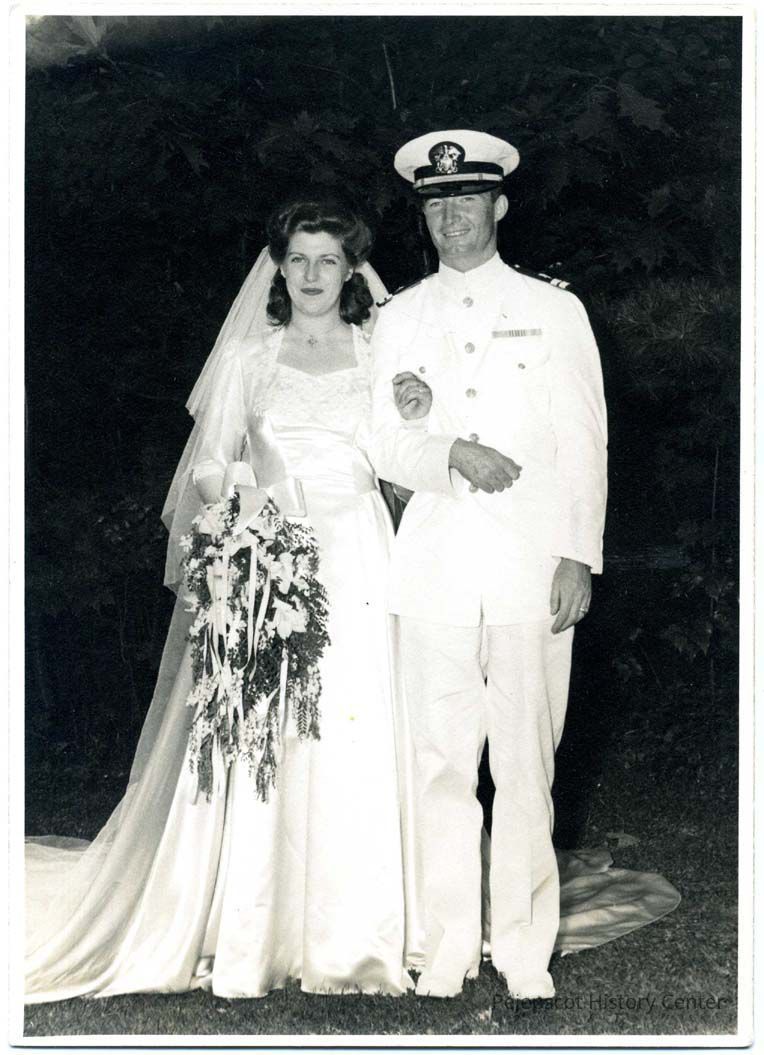 John C. Alderman and Nancy Randolph White, of Los Angeles, who were married at the Bowdoin Chapel on July 15, 1943. John was the first commander of BNAS.