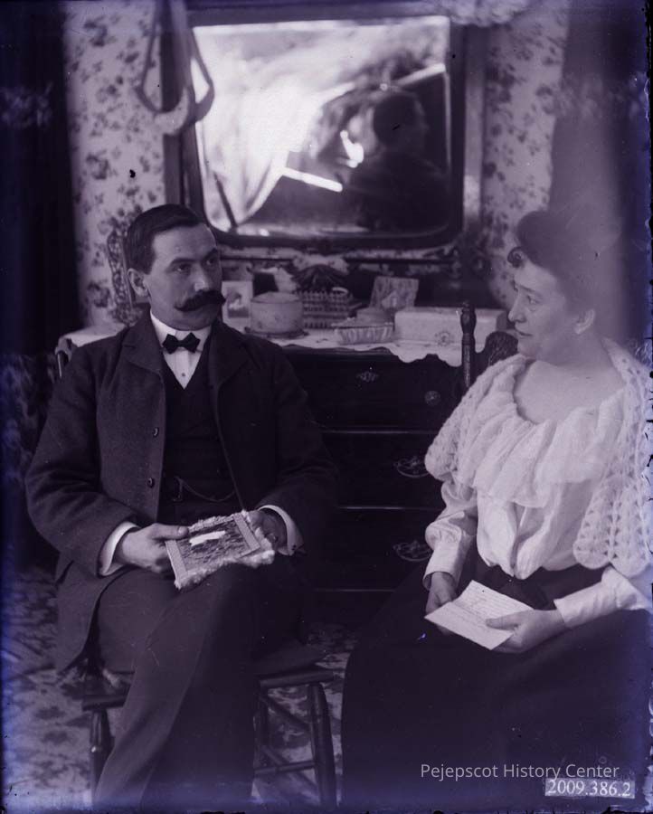 Alfred LeTarte sitting with an unidentified lady in a living room. Very similar to 2009.386.1 & 2009.386.3, just a different pose.Collection