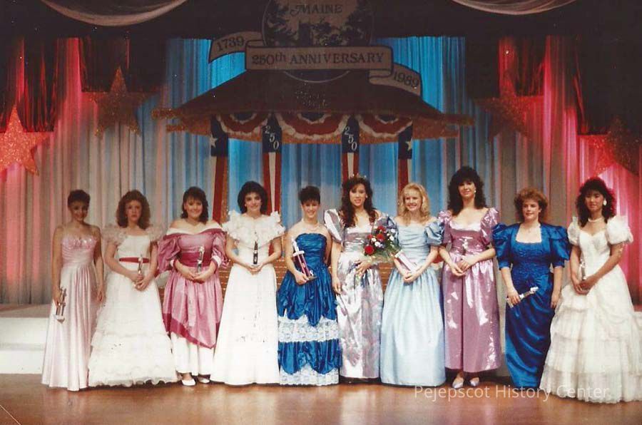 A color photograph of (l to r) Corrie Lynn Pottle, Denise Matheson, Jodie McKenna, Chressie Gagne, 1st runner-up Heather Wilkes, Teen Queen Autumn Ison, 2nd. runner-up Michelle Bergquist, Heather may, Leanne Roy and Rosanna Chin,
