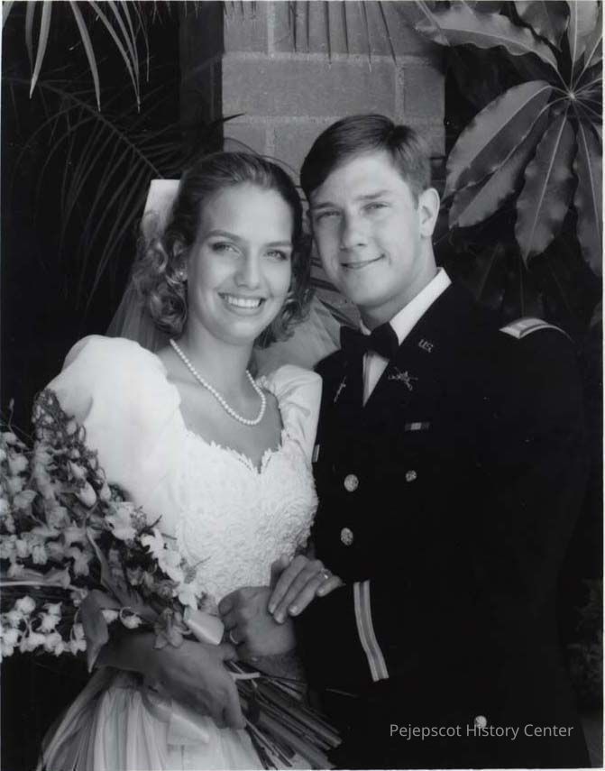 An undated black and white wedding photo of Lts. Allyson and John Ross.