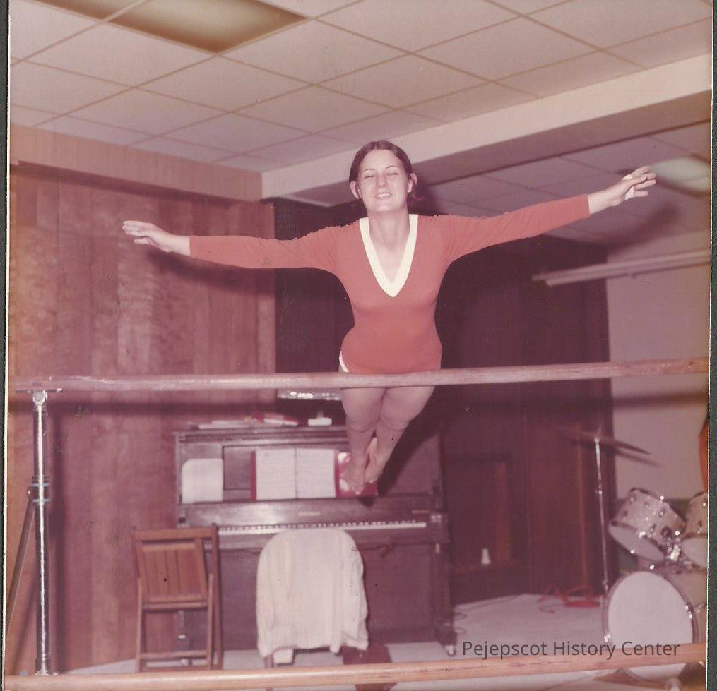 Althea Kinney Contestant #3 practicing her uneven parell bar routine to the tune of "Foul On the Hill."Collection