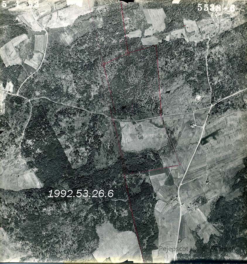 A B/W aerial photograph of the Brighton Hill area of Brunswick. By Eastern Aerial Surveys, Inc. Boston, MA. 5/4/1953