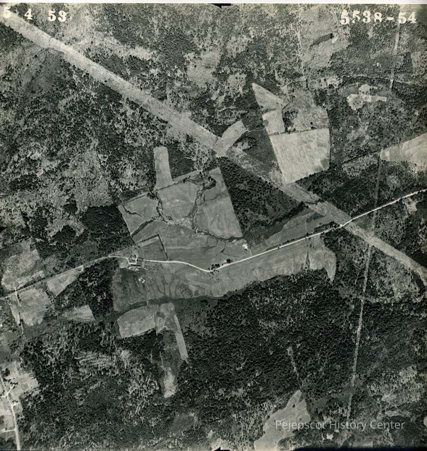 A B/W aerial photograph of Brunswick near Cox Pinnacle, by Eastern Aerial Surveys, Inc. Boston, MA. 5/4/1953.