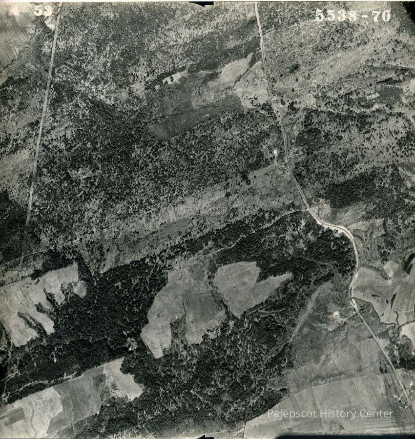 A B/W aerial photograph of River Road and Rocky Hill. This is very similar to 1992.53.26.69. 5/4/1953