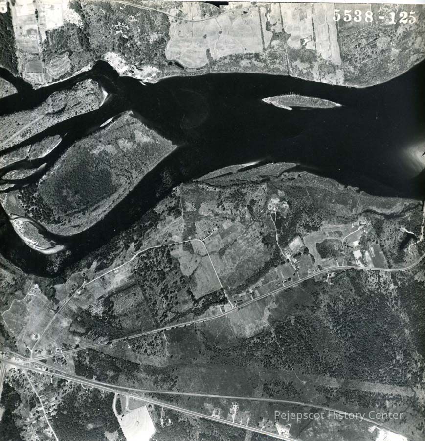 An aerial photo of the Androscoggin River. 5/4/1953