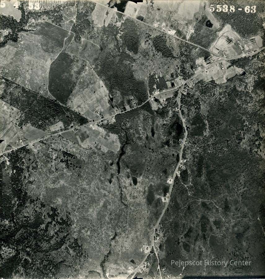 An aerial photo of the area of the First Parish Cemetery. 5/4/1953