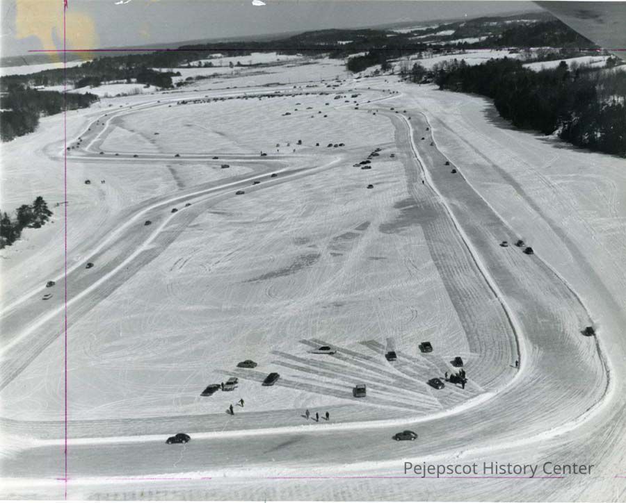 An aerial photo of the race track on the New Meadows River. 1966