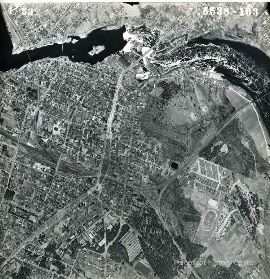 An aerial photograph of downtown Brunswick. 5/4/1953.