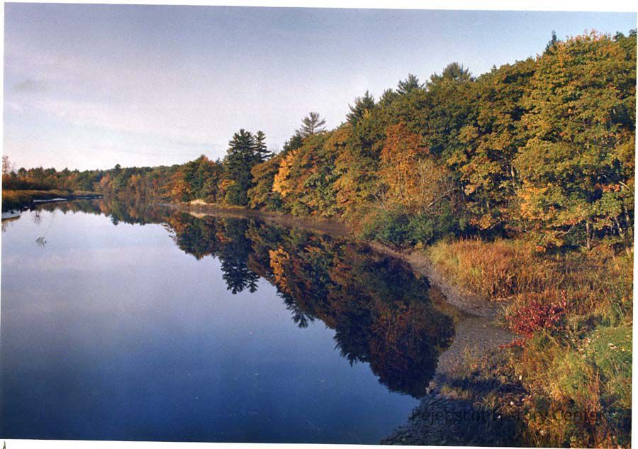 A color photo shows the Androscoggin River from the Foreside Road, Topsham, Maine, on 10/14/1988.