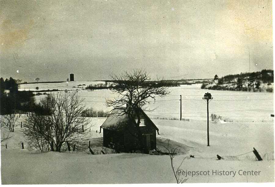 B/W photo of the Androscoggin River in the early morning in winter, circa 1922.