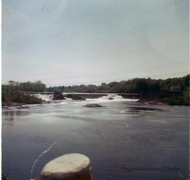 A color photo of one of the waterfalls along the Androscoggin River. The other one is to the Left (not shown). The prettiest sight in Brunswick, one that everyone stands up and takes notice.