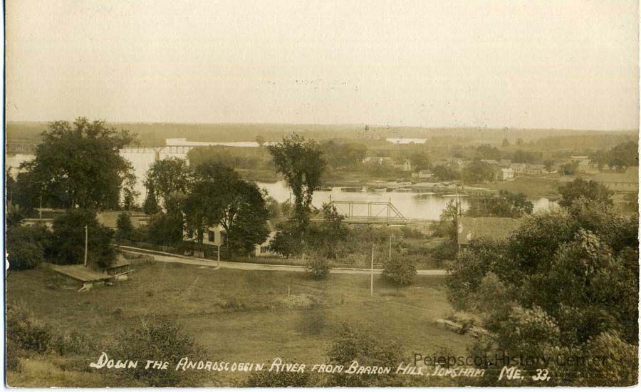 Sepia postcard of the Androscoggin River from Barron Hill, Topsham.