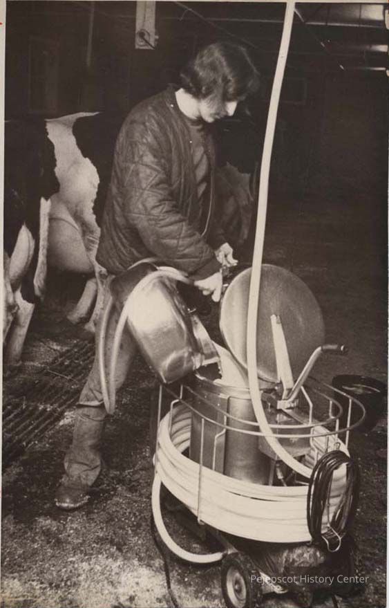 A B/W photographic view of Andy Bernier, of Topsham, helper on Ed Totman's farm.. This photo was published 3/14/1977.